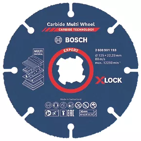 Multi-wheel that uses sharp carbide grits on its rim to cut multiple materials effectively. Suitable for angle grinders. The grits are joined to a steel body for an extra strong bond. Cuts wood, embedded screws and nails, plastic pipes and makes accurate cutouts in tough panels such as laminates and drywall. Maintains a constant speed and depth with Carbide Technology for durability. Click it on with X-LOCK for fast accessory changing.