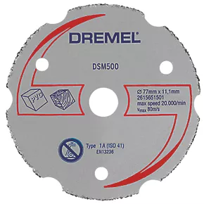 Multipurpose abrasive cutting disc with carbide grit designed for straight and plunge cuts in wood and other soft materials. For use with Dremel DSM20 compact saw only.