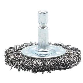 Steel crimped wire wheel for rapid rust or paint removal and cleaning of metal and stone. Ideal for surface preparation. Can be used with most brands of drills.