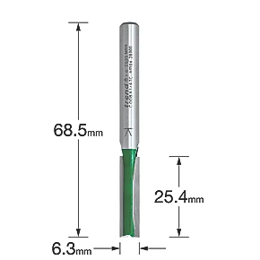 2-flute TCT tips for cleaner cutting edges and fast clearance of waste in all timber and timber-based materials. PTFE coating on the body helps reduce resin, friction and subsequent heat build-up in use to increase cutter lifespan. Bottom-cut feature for increased diversity, including light morticing. Ideal for use with fittings and sheet materials in imperial dimensions for precise fitting. Deep cutting profile for small furniture work. ¼” shank for easy control in smaller routers with K mark shank to ensure safe working practices.