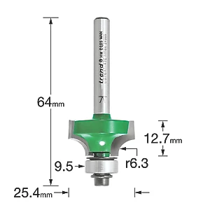 Trend C076X1/4TC 1/4″ Shank Double-Flute Rounding-Over Bearing-Guided Router Cutter 25.4 x 12.7mm
